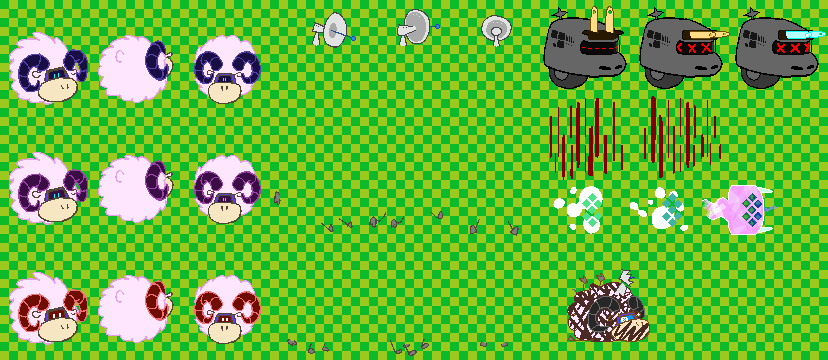 An array of sprites I drew for a computer game I had a hand in. Here is a demonstration of how the sprites for the body, legs, and satellite dish combine to create a full image of the player character.